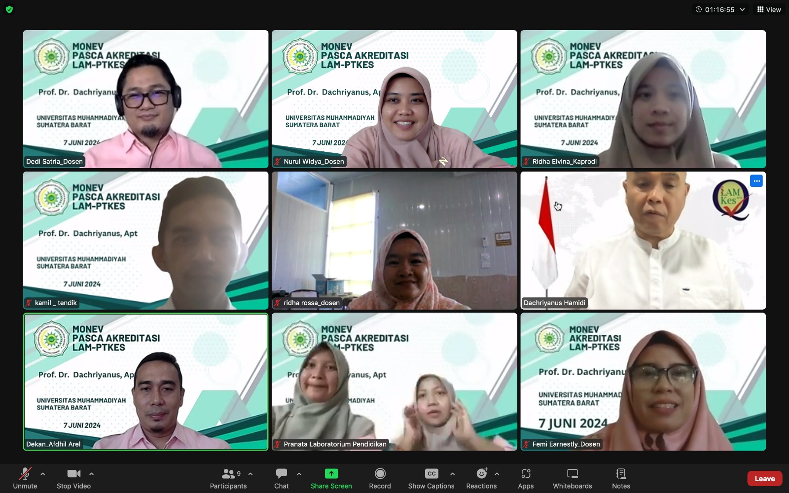 Jumat, 7 Juni 2024, Program Studi Farmasi Program Sarjana Fakultas Farmasi UM Sumbar melakukan kegiatan monitoring evaluasi Pasca Akreditasi bersama asesor LamPTKes Bapak Prof. Dr. Dachriyanus, Apt secara online. Kegiatan diawali dengan kata sambutan dari Dekan Fakultas Farmasi UM Sumbar. Selanjutnya diskusi mengenai kriteria 9 bersama asesor Bapak Prof. Dr. Dachriyanus, Apt. Kegiatan Monev dihadiri semua Dosen, tenaga kependidikan dan Pranata Laboratorium Pendidikan. Semoga program studi farmasi program sarjana fakultas Farmasi UM Sumbar semakin berkembang dan dapat meningkatkan nilai akreditasi dengan adanya kegiatan monev pasca akreditasi tersebut.